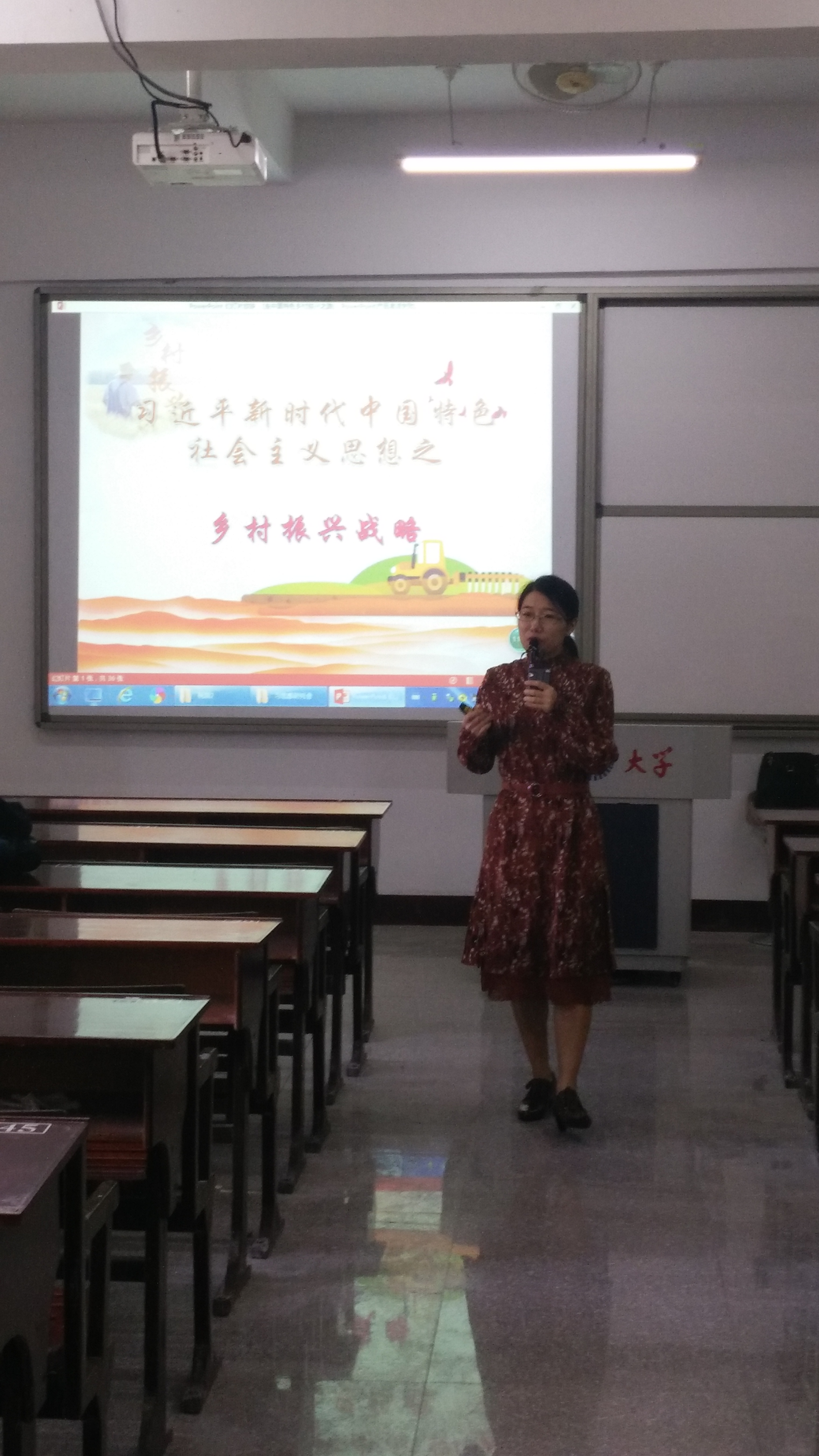 2018年11月21日下午,习近平新时代中国特色社会主义思想读书社在普照楼311开展常规学习活动。思政部教师康丽颖做了题为“习近平新时代中国特色社会主义思想之乡村振兴战略”的专题讲座,习近平新时代中国特色社会主义思想读书社全体社员参与了此次活动。