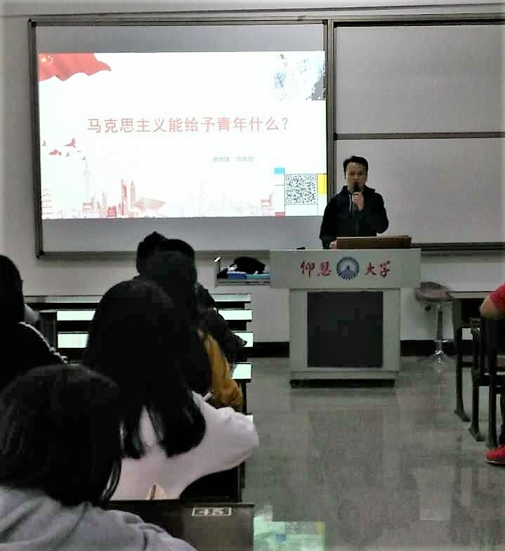 2018年11月28日下午,马克思主义经典理论读书社在普照楼311开展了第一次讲座学习活动。思政部唐锦峰老师做了题为《马克思主义能够给予青年什么》的专题讲座,活动由马克思主义经典理论读书社负责人钱文静主持,马克思主义经典理论读书社全体社员,思政部教师杨丽娥、刘菲参加了此次活动。