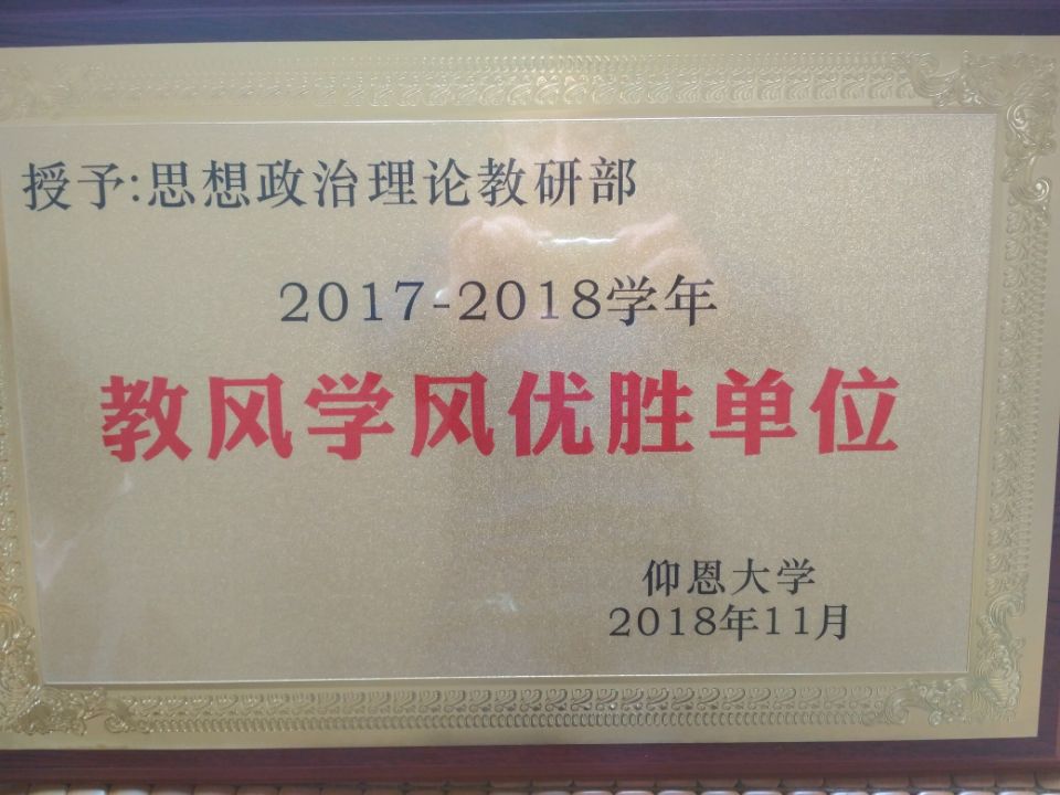 2018年12月28日,仰恩大学在第一教学区普照大礼堂召开“迎新年暨表彰年度先进单位和个人文娱晚会”。在该次大会上,思想政治理论教研部喜获“教风学风建设优胜单位”荣誉称号。