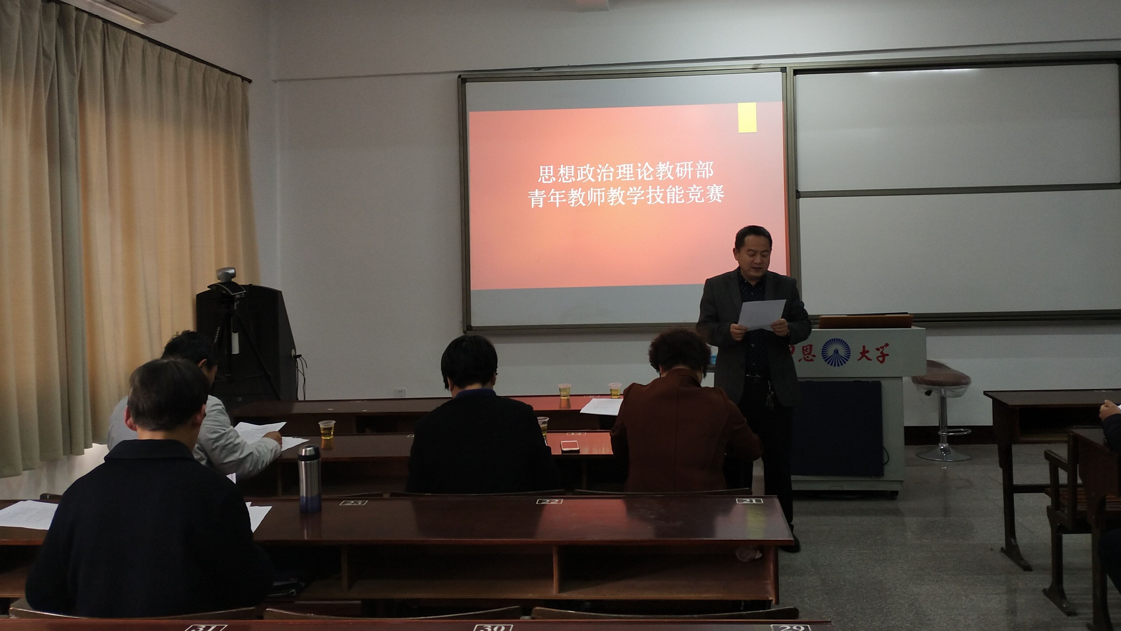 4月3日下午,思想政治理论教研部第二届青年教师教学技能竞赛在普照楼311室成功举行。此次比赛思政部邀请了校党委书记庄哲峰、学校督导组组长吴新博、思政部副主任李克钦、思政部教师林文景和章娇娜等五位教师担任评委,思政部有六位青年教师参加比赛。