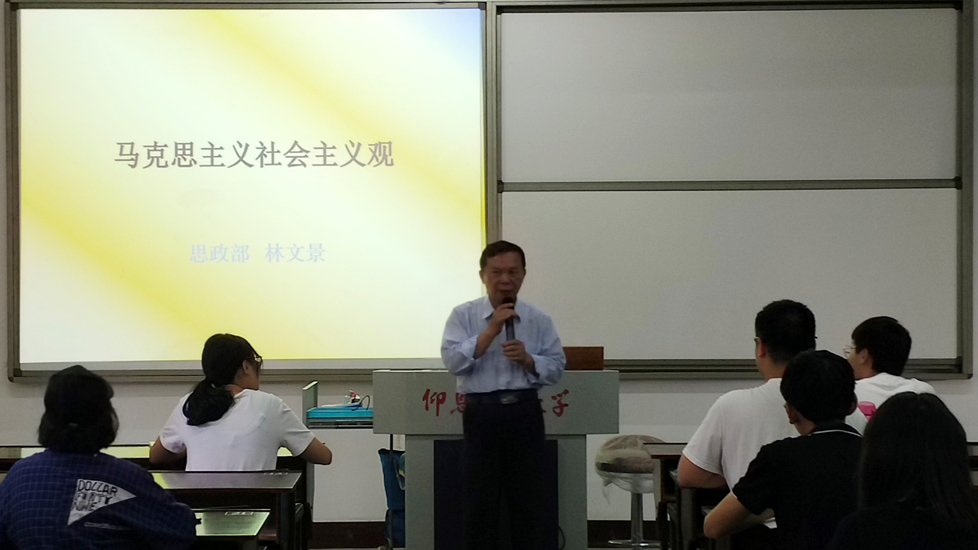 林文景以专业又不失风趣的语言将马克思主义社会主义观的相关理论传授给大家,将枯燥的理论与事例、图形相结合,让在场的师生重新接受了一次知识的洗礼。讲座结束后,现场掌声阵阵。 (文/图 思政部)