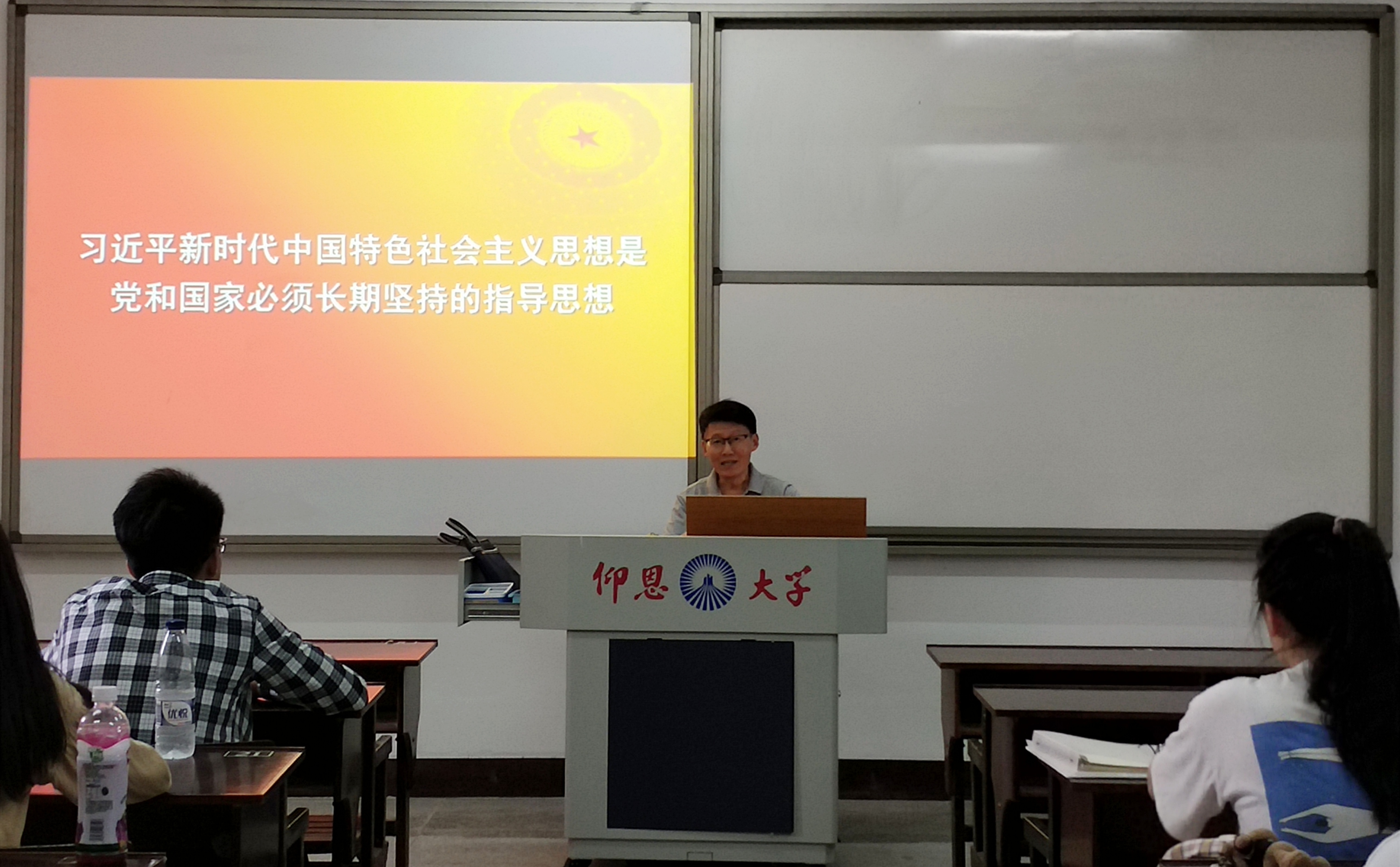 5月29日下午,习近平新时代中国特色社会主义思想读书社在普照楼311开展了本学期第三次学习活动。仰恩大学校党委书记庄哲峰受邀做了题为《习近平新时代中国特色社会主义思想是党和国家必须长期坚持的指导思想》的专题讲座,习近平新时代中国特色社会主义思想读书社全体社员及思政部教师高灿、刘菲等参加了此次讲座。