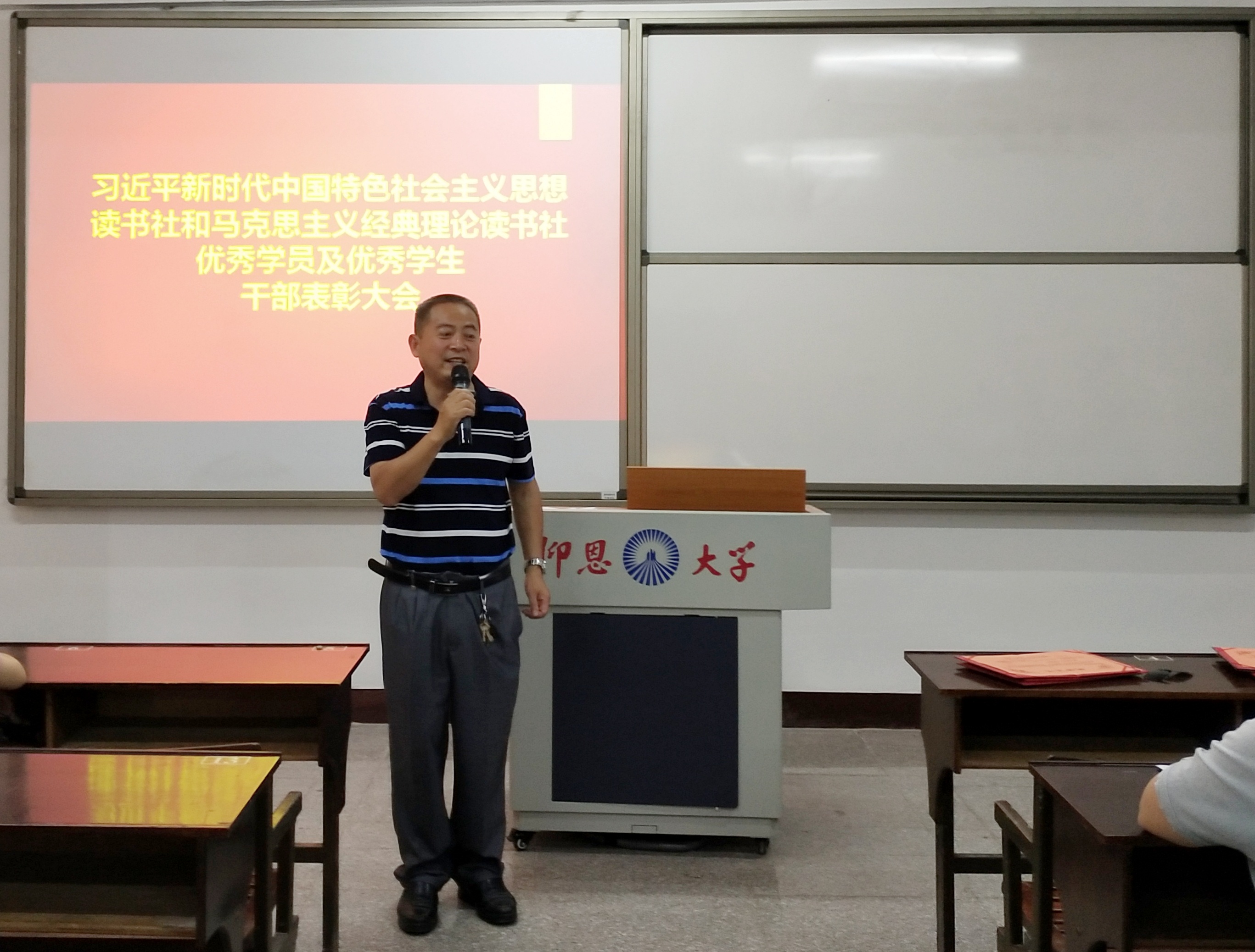 6月26日下午,习近平新时代中国特色社会主义思想读书社和马克思主义经典理论读书社表彰大会在普照楼311举行,本次活动由思想政治理论教研部主办。思想政治理论教研部相关教师,各读书社社员等100余人参加活动,会议由马克思主义经典理论读书社指导教师钱文静主持。