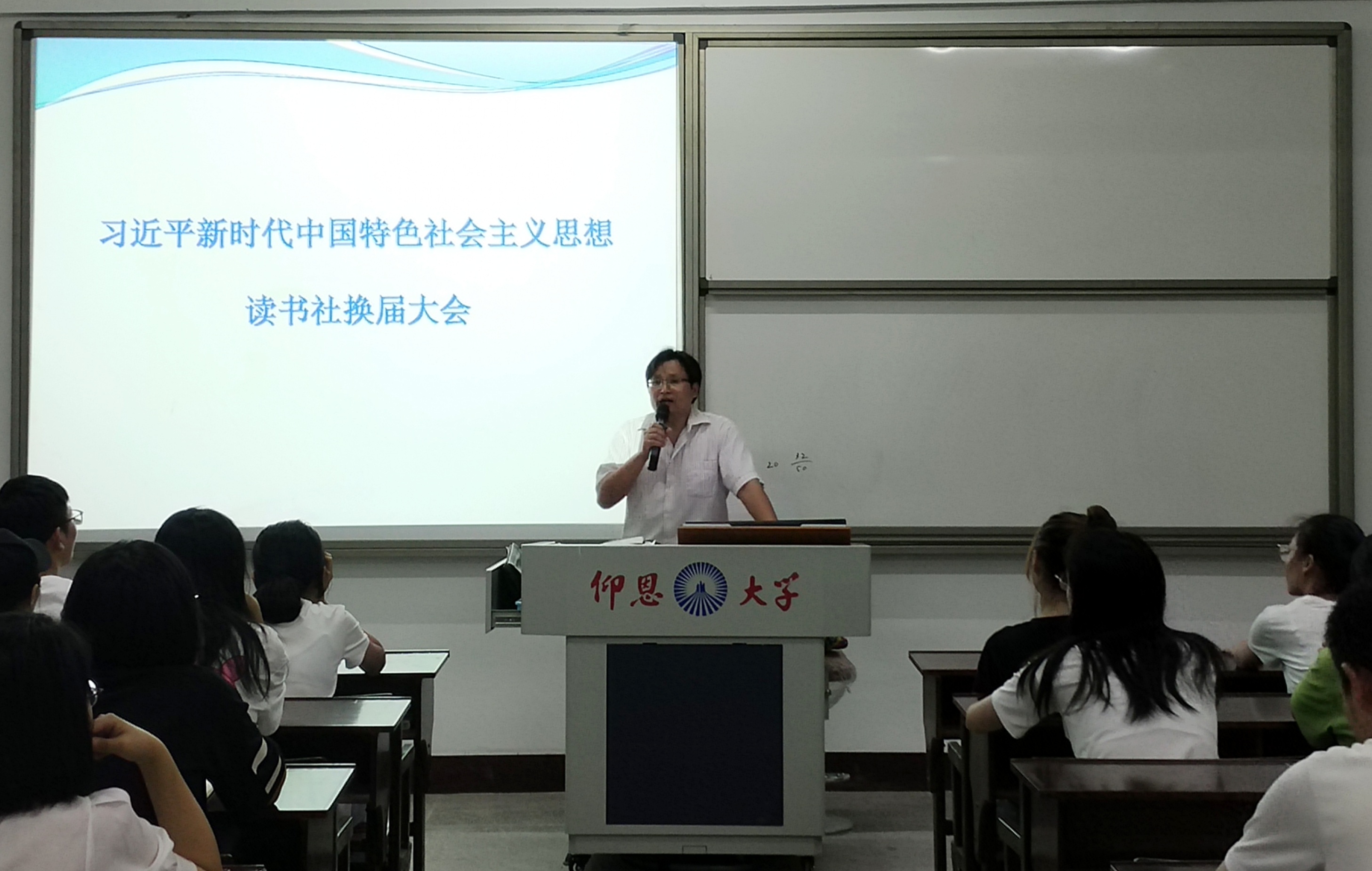 袁国华表示此次换届大会是根据校团委文件精神,将原有的“马克思主义理论读书社”与“习近平新时代中国特色社会主义思想读书社”合并为“习近平新时代中国特色社会主义思想读书社”,并选出新的读书社干部成员。