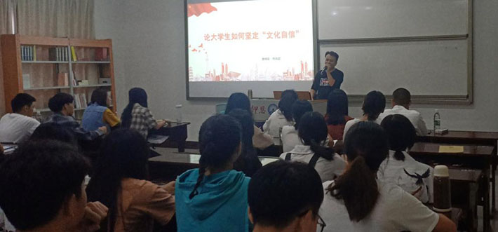 仰恩大学习近平新时代中国特色社会主义思想读书社马克思主义理论学习小组于10月7日下午16:30分在普照教学楼311室成功举行本学期第一次讲座,读书社有幸邀请到pg游戏电子模拟器的唐锦锋博士生为读书社成员做了“论大学生如何坚持文化自信?”的读书讲座。 讲座开始前,在工作人员的指引下,2019级学习小组成员有序进入教室对号入座。在唐老师的幽默介绍下,呈现出一片师生融洽的良好氛围。在授课过程中,唐锦锋老师围绕坚持文化自信的立场,陆续展开一系列关于中华民族文化方面的问题。他深刻剖析了文化自信的重要性,教导同学们应以马克思主义为指导,坚守中华文化立场、树立文化自信,努力学习,为实现中华民族的伟大复兴而持续奋斗! 讲座结束后,同学们纷纷称赞唐老师授课方式独特,知识容易吸收,表示要好好学习新思想,争做时代新青年。(文/黄如达 图/高欣)