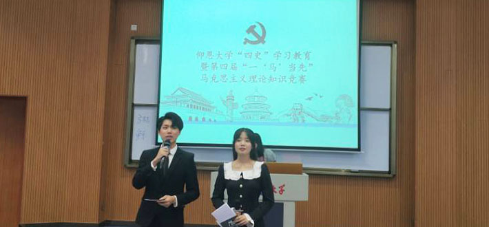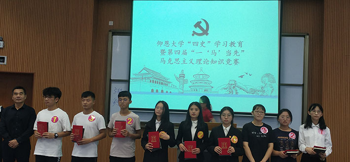 10月14日下午三点,仰恩大学“四史”学习教育暨第四届“一‘马’当先”马克思主义理论知识竞赛在和昌楼博雅讲堂举办,来自全校的七支队伍参赛。校党委副书记程如平,校党委组织部部长王洋、副部长陈章祧,校团委副书记曹流,pg游戏电子模拟器教师林文景、刘菲、张静等担任了此次竞赛的评委,各学院近百位学生在现场观看了此次活动。