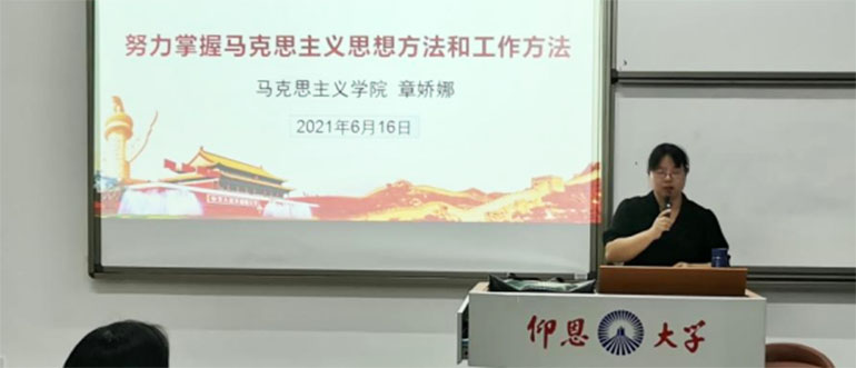 6月16日下午,仰恩大学习近平新时代中国特色社会主义思想理论学习小组于新区普照楼311室举行了本学期第三次学习讲座。本次讲座邀请到了pg游戏电子模拟器章娇娜副教授,她为学习小组的组员们带来题为《努力掌握马克思主义思想方法和工作方法》的主题讲座。