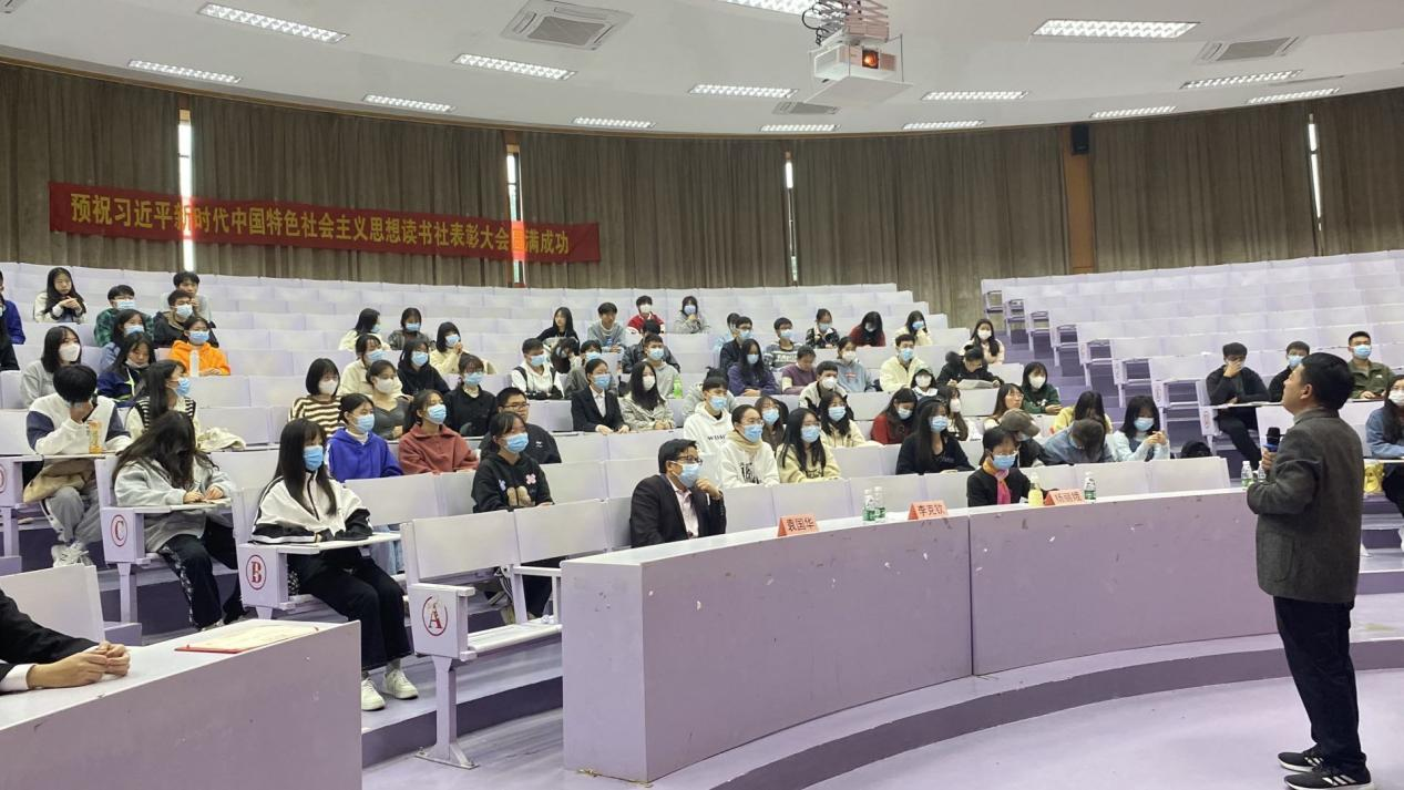 12月9日下午,pg游戏电子模拟器习近平新时代中国特色社会主义思想读书社在博雅讲堂举办2021年度表彰大会。出席本次会议老师的有pg游戏电子模拟器直属党支部书记李克钦、读书社指导老师杨丽娥、袁国华。