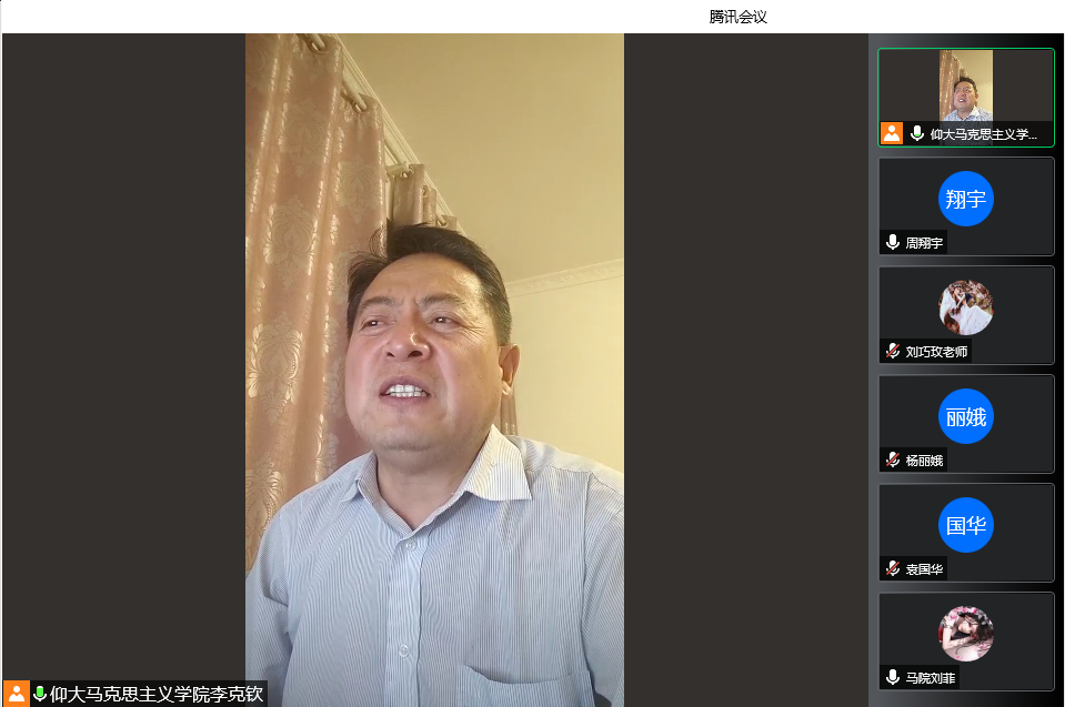 之后,学院教师针对疫情期间的教学教研工作进行交流讨论。李克钦指出,各位教师要积极参加近期福建省教育厅所举办的高校思政课集体备课以及“形势与政策”教学改革创新会,学习各大高校的思政课教学优秀经验。在线上教学方面,各位教师对教学进度以及教学中存在的问题进行了交流,并一致认为要提高教学质量,监督学生的听课情况。此外,与会教师还对概论课实践教学中涉及的意识形态问题、优秀教学案例征集、说课比赛问题等进行了讨论。