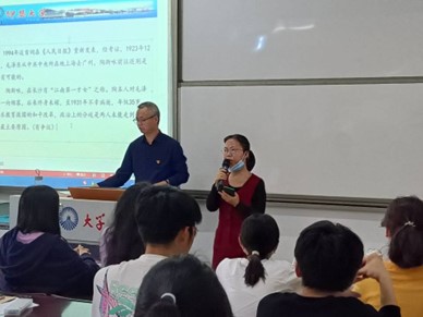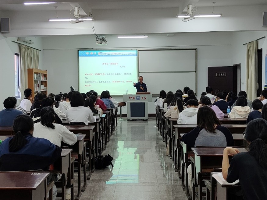 讲座开始前,读书社指导老师杨丽娥副教授对读书社的新成员们强调了读书社的学习纪律和活动安排问题,让新生们能够更好地了解读书社。接着,讲座开始。胡友仁老师为大家介绍了伟大领袖毛泽东的生平,以及毛泽东思想的历史地位。要了解其诗词思想,需先了解时代特征。在党的长期斗争实践中,以毛泽东同志为主要代表的中国共产党人始终不忘初心,一次次挽狂澜于既倒,扶大厦之将倾,救人民于水火。胡友仁老师希望同学们认真学习“五史”。从遵义会议的历史地位,从马克思主义中国化时代化的发展历程中学史明理、学史增信。老师特别强调我们应该学习马克思主义的立场、观点和方法。马克思主义不是教条,而是研究的方法。用马克思主义中国化时代化的最新成果来武装头脑,指导实践。胡友仁老师以毛泽东的诗词为例,从诗词中体会毛泽东的思想情感,以一种新的方式为同学们解读了毛泽东思想。同学们都深深陶醉在毛泽东的诗词世界和精神海洋之中。胡友仁老师为同学们打开了一扇学习毛泽东思想的新窗户,唤醒了同学们对知识的无限渴求。