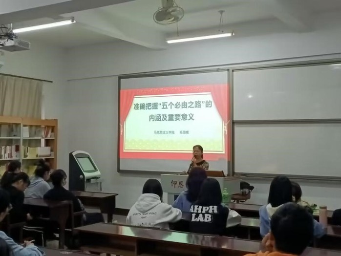 杨丽娥老师的讲座内容包含两个方面:一是准确把握“五个必由之路”的内涵,二是“五个必由之路”的重要意义。首先,杨老师向同学们阐释了“五个必由之路”是什么,即“坚持党的全面领导是坚持和发展中国特色社会主义的必由之路;中国特色社会主义是实现中华民族伟大复兴的必由之路;团结奋斗是中国人民创造历史伟业的必由之路;贯彻新发展理念是新时代我国发展壮大的必由之路;全面从严治党是党永葆生机活力、走好新的赶考之路的必由之路。”其次,杨老师对“五个必由之路”进行了分述性的解释与深度性的探究,并从整体上总结“五个必由之路”的内在联系,还将“五个必由之路”与“十个坚持”联系起来学、将牢牢把握五个战略性有利条件与怎样走好“五个必由之路”结合起来学。杨老师注重理论联系实际,列举出贴近大学生实际的生动现实例子,使同学们对“五个必由之路”的内涵有了更深刻的理解。最后,杨老师结合专家的观点阐述“五个必由之路”的重要意义,让同学们认识到“五个必由之路”是对马克思主义理论的丰富和发展。必由之路就是成功之路、胜利之路。征途漫漫,唯有奋斗!