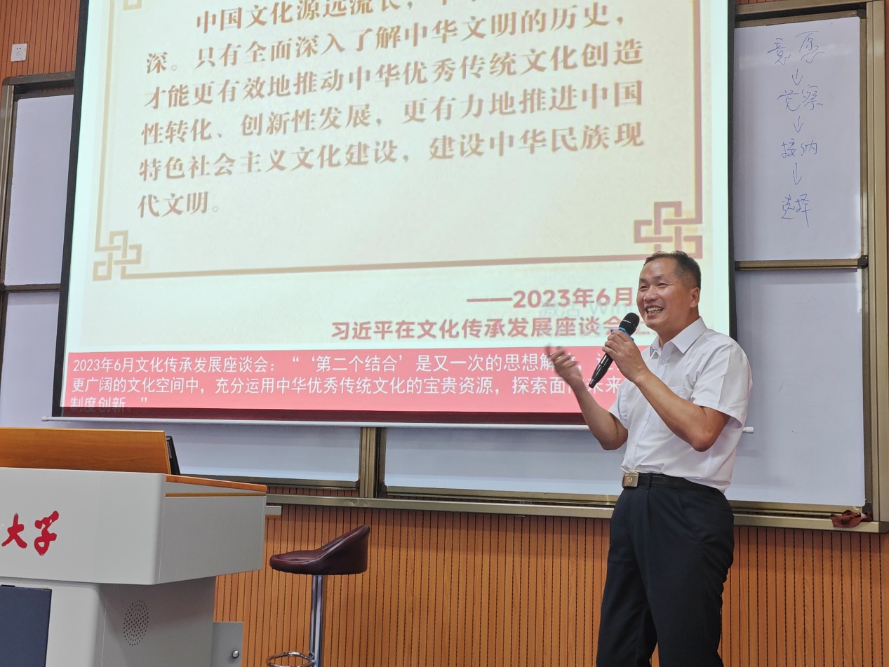 肖教授从习近平总书记的传统文化情怀切入,向全体学员阐释了习近平文化思想的提出及要点、习近平新时代中国特色社会主义思想与传统文化深蕴。他结合中华优秀传统文化对“两个结合”做了详细解读,通过典型案例介绍,深入阐述了“第二个结合”的重大意义。