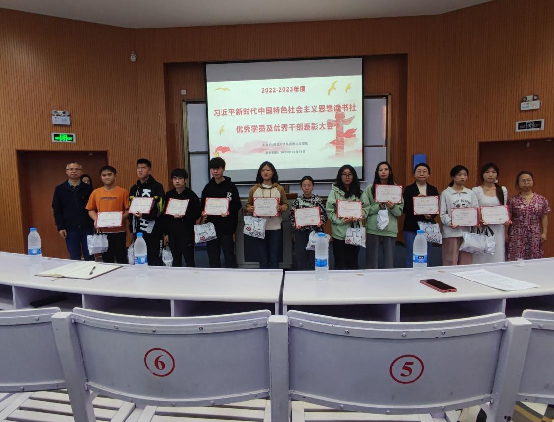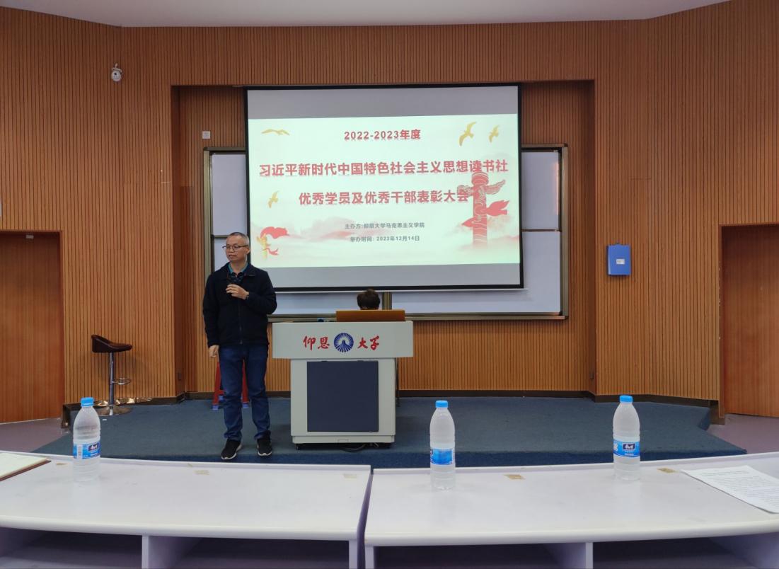 2023年12月14日,为表彰习近平新时代中国特色社会主义思想读书社学员在上一学年时间中取得优异成绩、做出突出贡献的优秀学员以及优秀学生干部,在和昌教学楼博雅讲堂开展习近平新时代中国特色社会主义思想读书社优秀学员及优秀干部表彰大会。pg游戏电子模拟器胡友仁老师、杨丽娥老师以及章娇娜老师参加了大会。