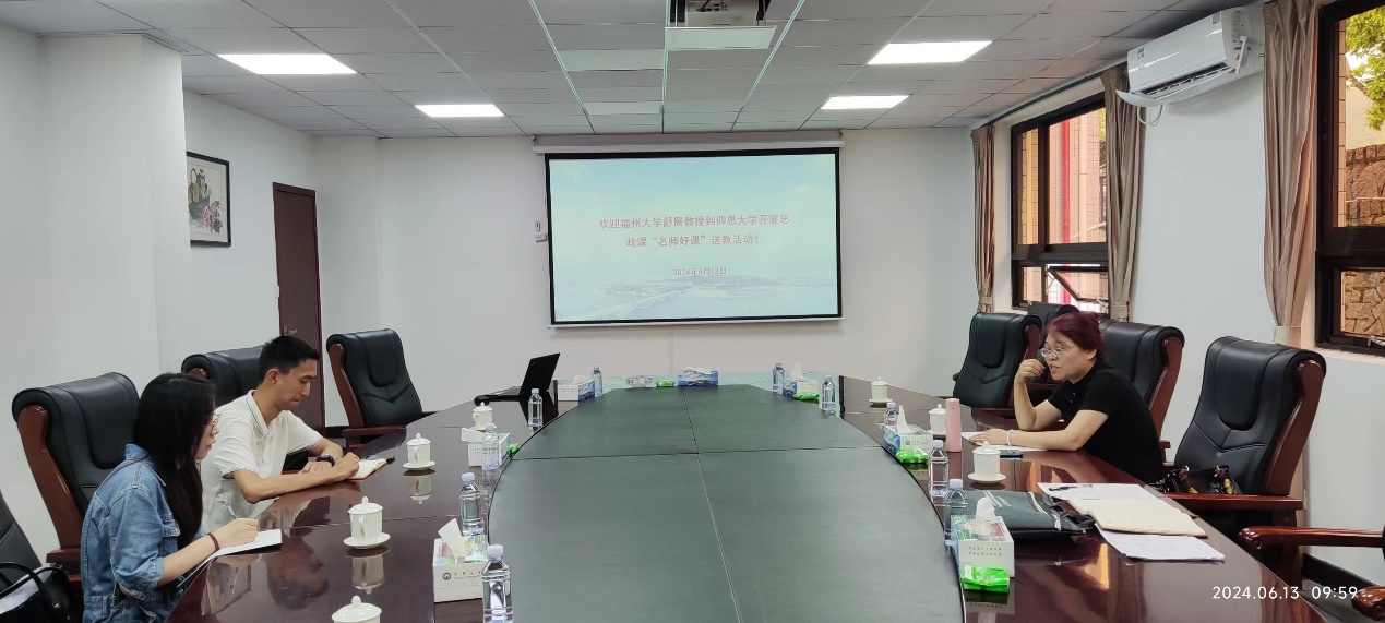 2024年6月13日上午,舒展教授深入我校思政课堂,听了pg游戏电子模拟器周翔宇老师讲授的“中国近现代史刚要”课程和赵雨鑫老师讲授的“毛泽东思想和中国特色社会主义理论概论”课程,并随后与两位被听课教师展开课后交流。