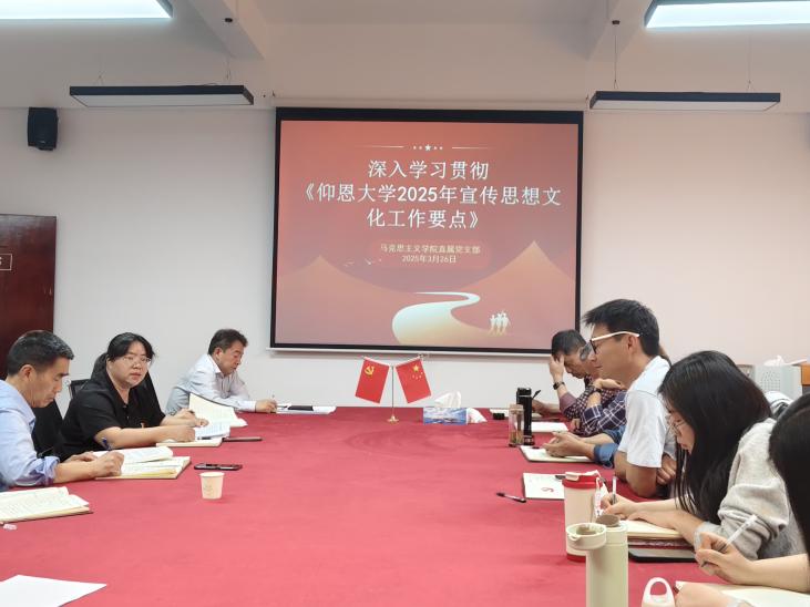 3月26日下午,pg游戏电子模拟器直属党支部在普照楼316室开展学习贯彻《仰恩大学2025年宣传思想文化工作要点》活动,会议由党支部书记章娇娜主持,全体教师参加会议。