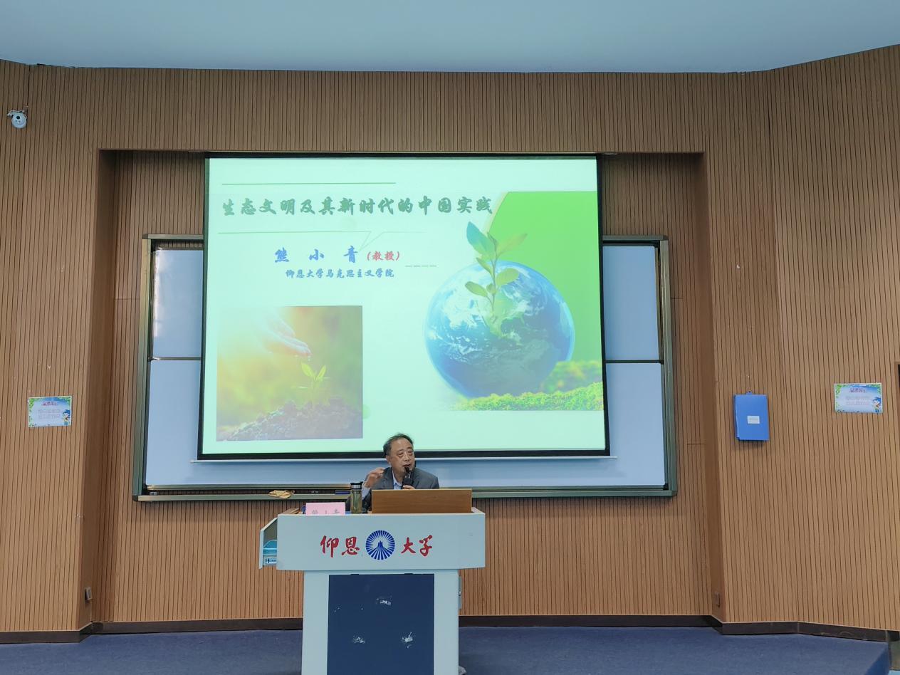 熊小青教授以生态文明为主题,围绕人与自然的关系探讨生态文明的内涵与建设。熊教授深刻分析了“文明中的自然理解”,提出社会与自然之间的反动、对抗与共处的关系,指出人与人的矛盾归根到底是人与自然的矛盾。他认为,生态文明是基于人的生态规定,是人基于生存的文明要求。熊教授结合新时代中国的生态文明实践案例,以生动的语言进行了深入浅出地讲解,对生态文明及其表现形式的多样性与丰富性等内容娓娓道来。