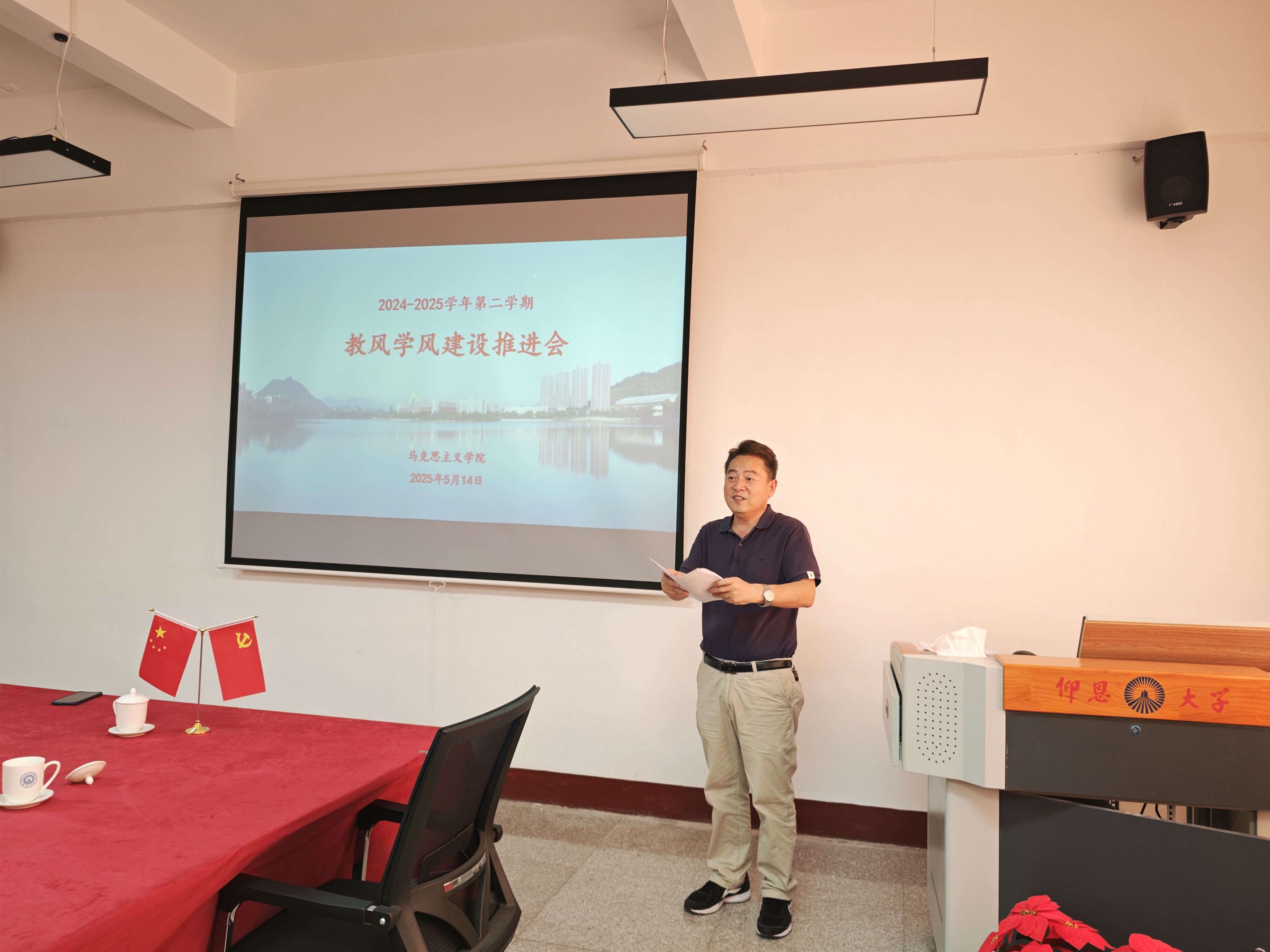 首先李克钦领学《新时代高校教师职业行为十项准则》、《仰恩大学师德师风建设承诺书》等文件,并通过教育系统违反师德师风的典型案例开展警示教育。紧接着特别针对学术不端、师生关系异化、课堂教学纪律等风险领域进行重点剖析,强调“学术红线不可越,师德底线不能破”的工作原则。随后,全体教师庄重签署《仰恩大学师德师风承诺书》。