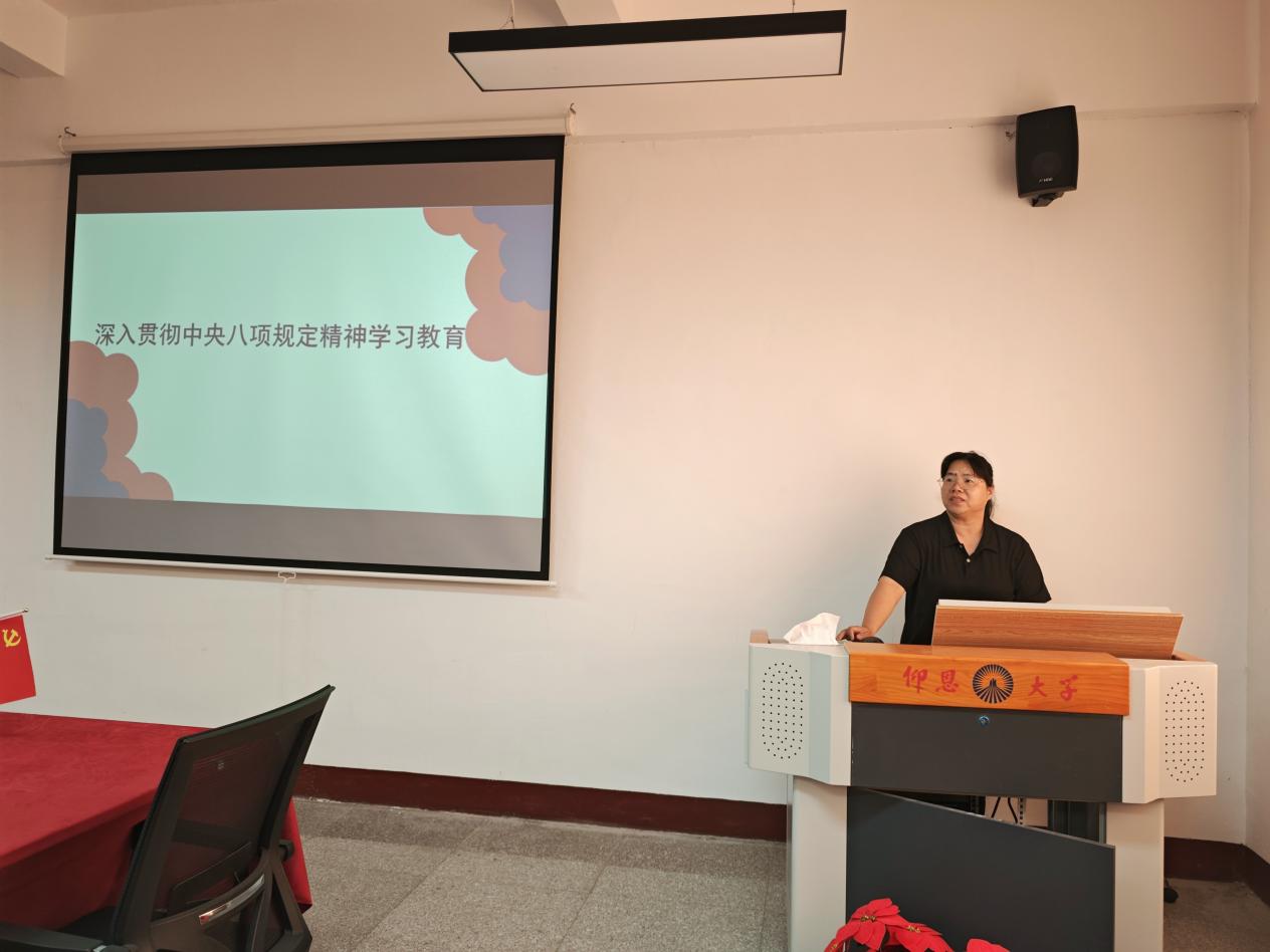 为深入学习贯彻习近平总书记关于加强党的作风建设重要论述和中央八项规定及其实施细则精神,pg游戏电子模拟器开展深入贯彻中央八项规定精神学习教育活动。会议由pg游戏电子模拟器直属党支部书记章娇娜主持,全体教师参加此次会议。